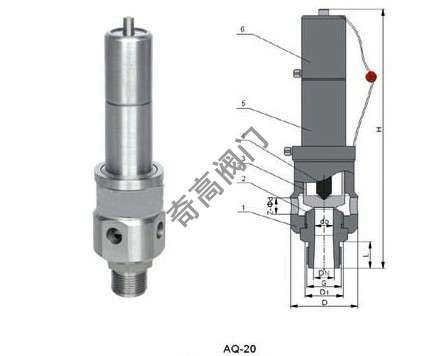 空压机安全阀AQ20适用于工作温度≤200℃的空气,系空压机专用安全阀,当设备内压力超过允许值时,阀门自动开启,继而全量排放,当压力降低到规定值时,阀门自动关闭,保证设备安全运行。